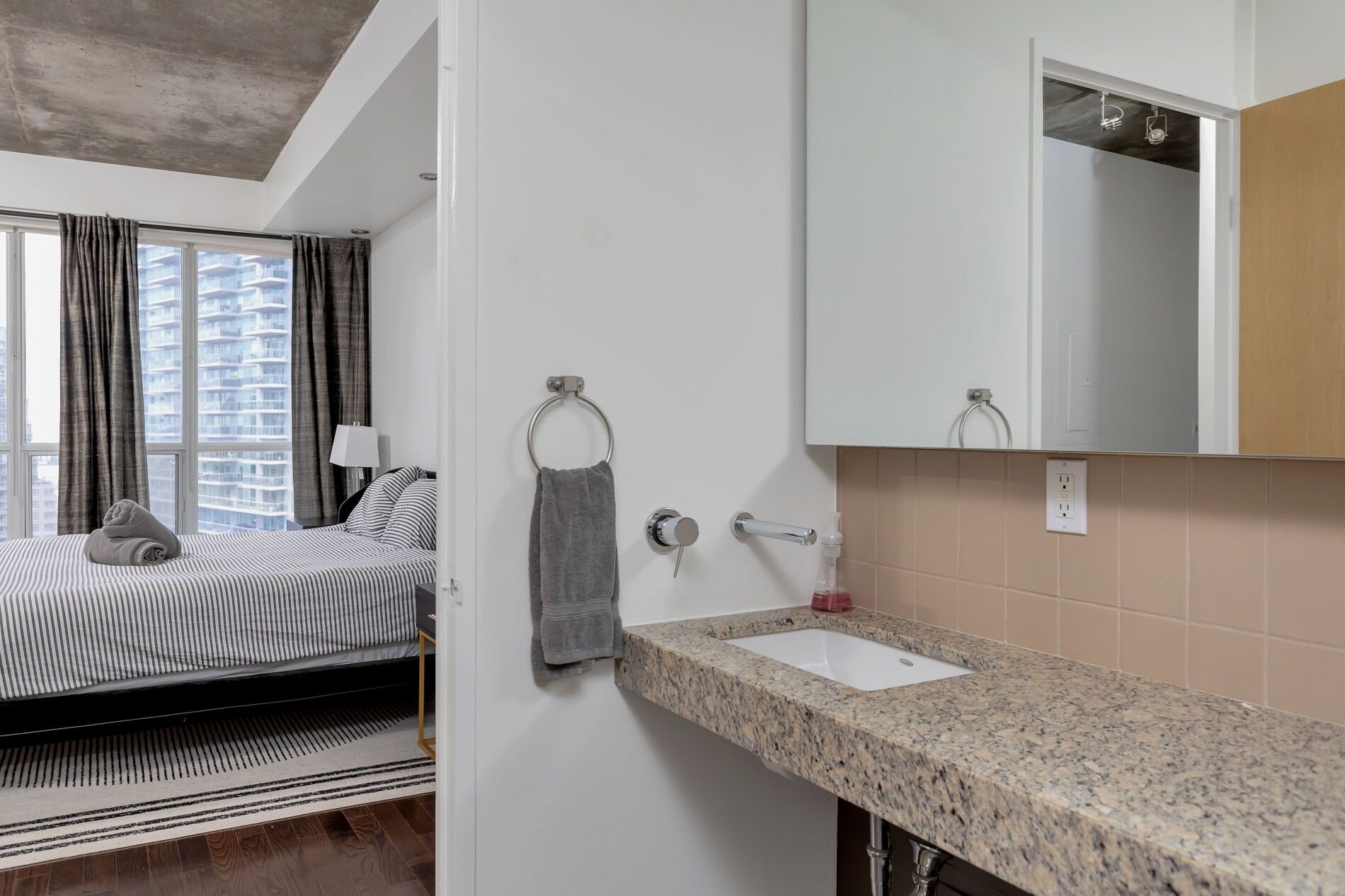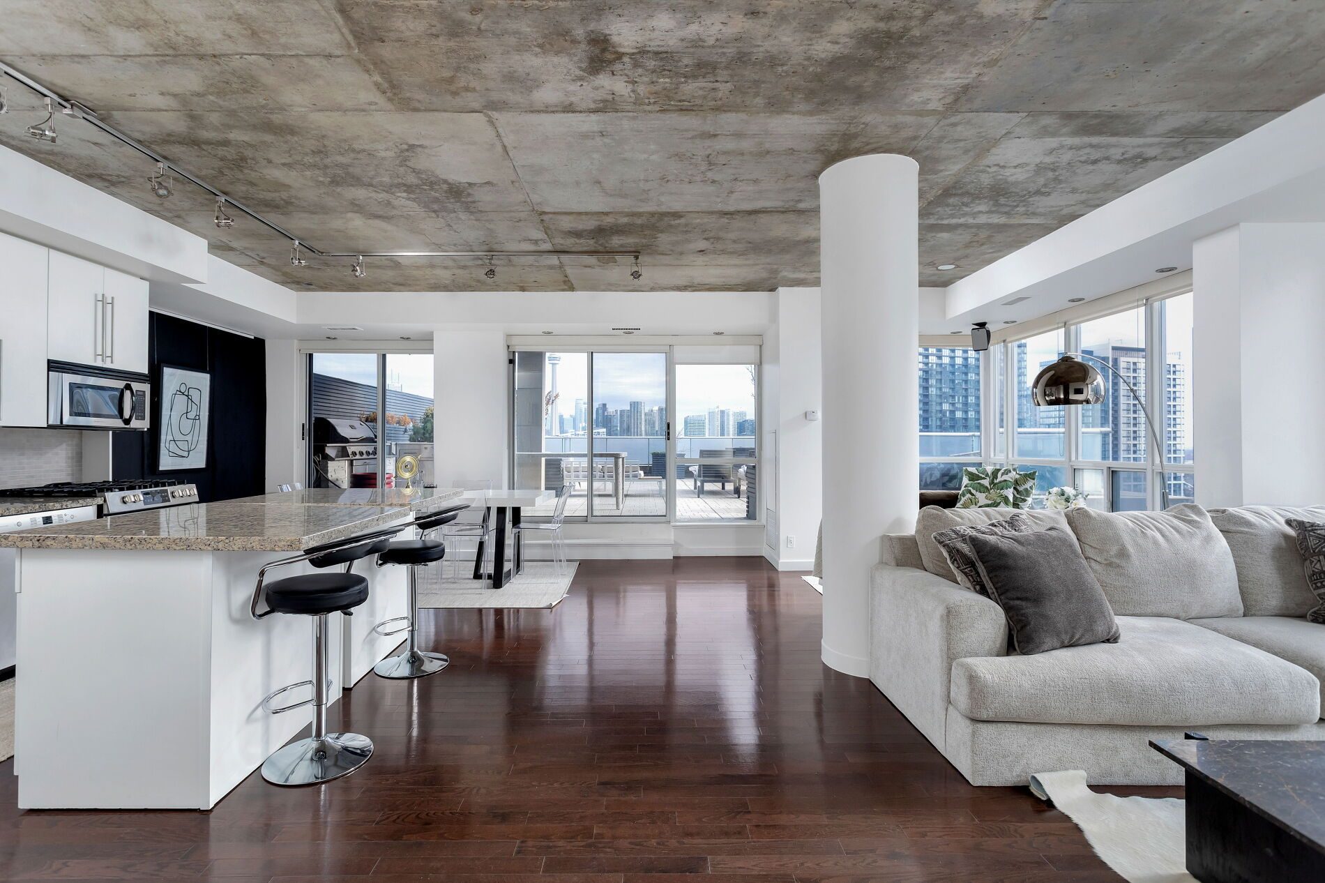 Live the Ultimate Urban Lifestyle at LPH18! This stunning 2-bedroom, 2-bath residence offers 1,245 sq. ft. of sleek interior space plus a massive 1,000 sq. ft. private terrace with breathtaking city and lake views-think Miami vibes right in the heart of Toronto. Entertain in style with a built-in BBQ, cabana, bar, and surround sound both indoors and outdoors. Inside, enjoy hardwood floors, 9′ exposed concrete ceilings, floor-to-ceiling windows, and a private balcony off the second bedroom.Perfectly located just steps from shops, parks, restaurants, and nightlife in King West, Queen West, and Liberty Village, with easy access to highways, GO Transit, and TTC.Your dream home-where luxury, lifestyle, and convenience meet.