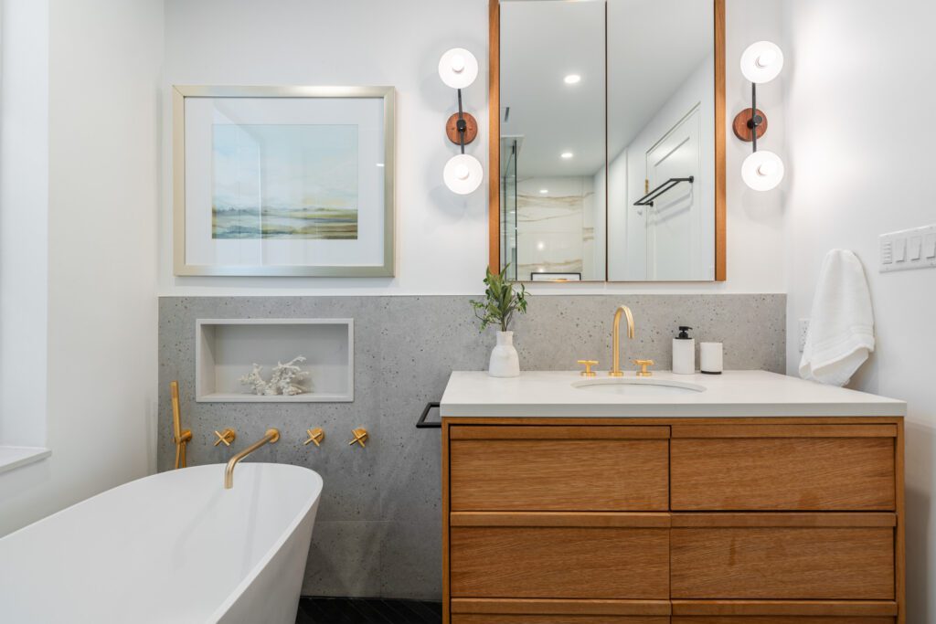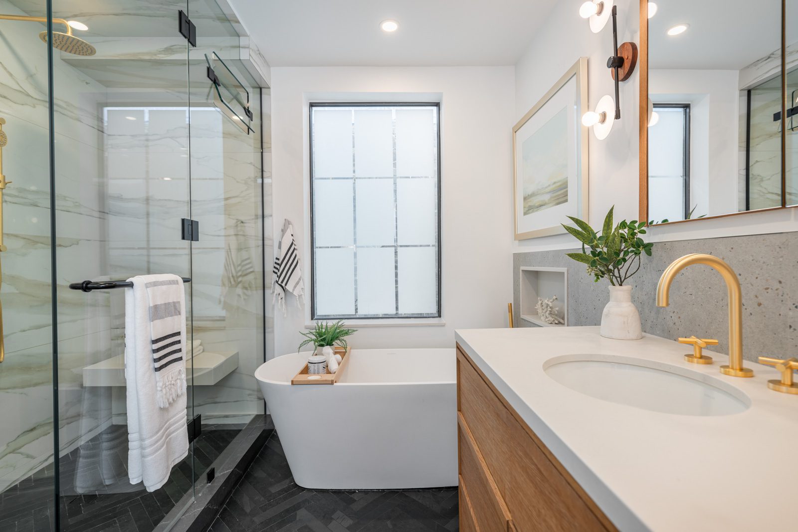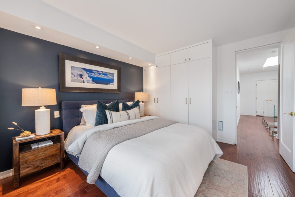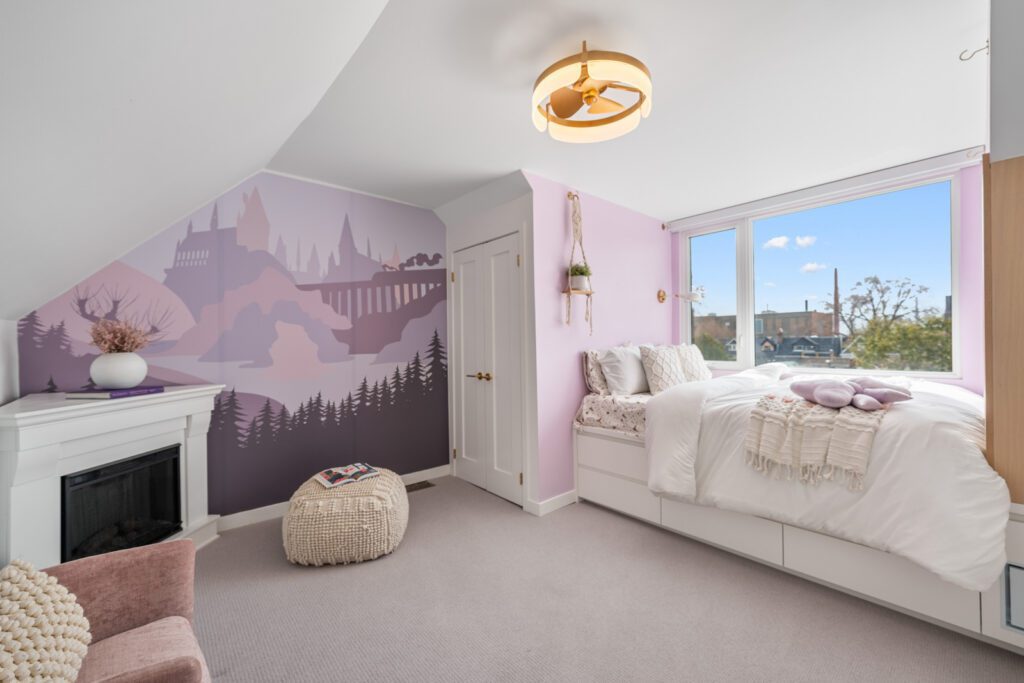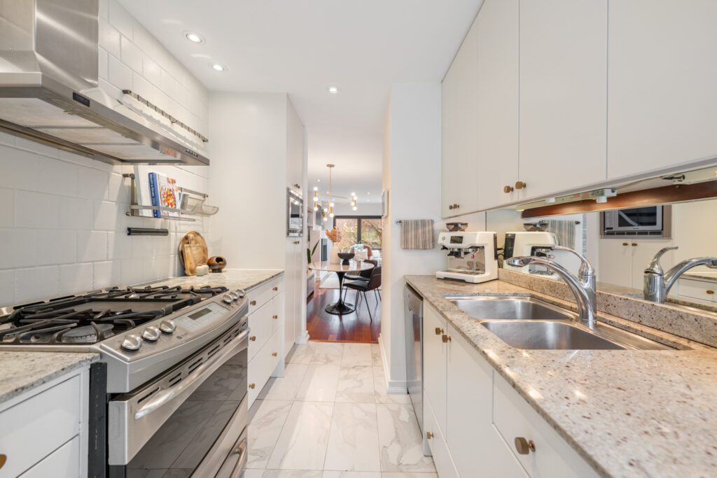 The kitchen offers stainless steel appliances including a Sub-Zero fridge and gas stove. Upstairs, spacious bedrooms include a bright primary with bay window and custom closet, plus a stunning spa bath with steam shower and soaker tub. The third-floor bedroom is sun-filled with city views.