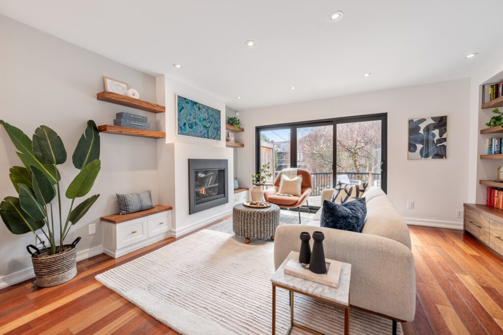 Welcome to 163 Langley ā a turnkey 3-bed, 3-bath 2.5-storey semi on a quiet, tree-lined street. The updated main floor features Italian porcelain tile, Brazilian hardwood, a gas fireplace with custom built-ins, and full-height sliding doors to a south-facing backyard with a deck, turf, and rare two-car parking.