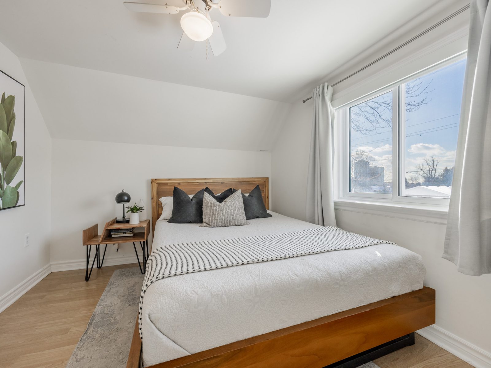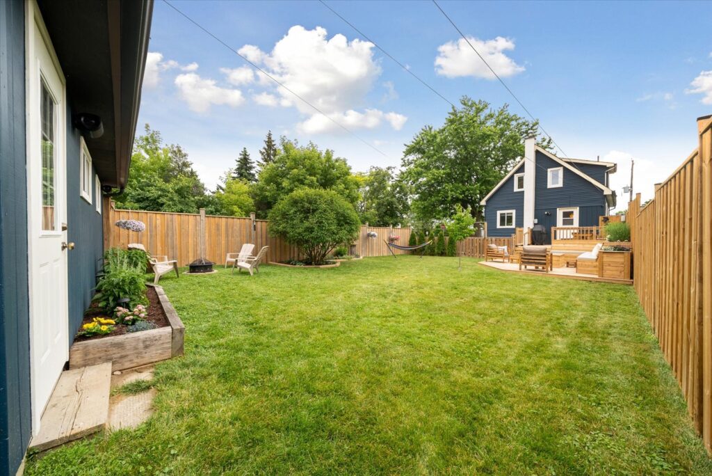 Out back, a fully fenced, professionally landscaped yard features a spacious two-tier deck made for summer gatherings and quiet moments alike. A double private driveway leads to an oversized detached garage with walk-up loft space, its own driveway, and a pellet stove—an exceptional bonus with exciting possibilities, including future expansion or a potential garden or laneway-style suite.