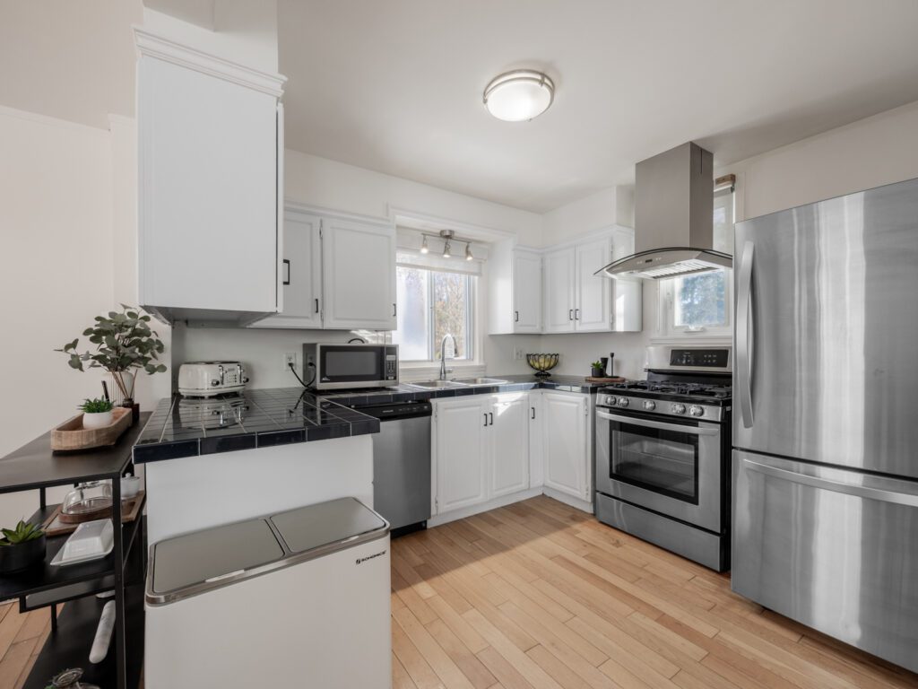 Inside, an open-concept living and dining area flows into a modern kitchen with stainless steel appliances—perfect for everyday living and easy entertaining. Three bedrooms and two bathrooms provide flexible space for families, guests, or working from home. The finished basement with a separate entrance adds even more versatility, ideal for an income suite or private retreat.
