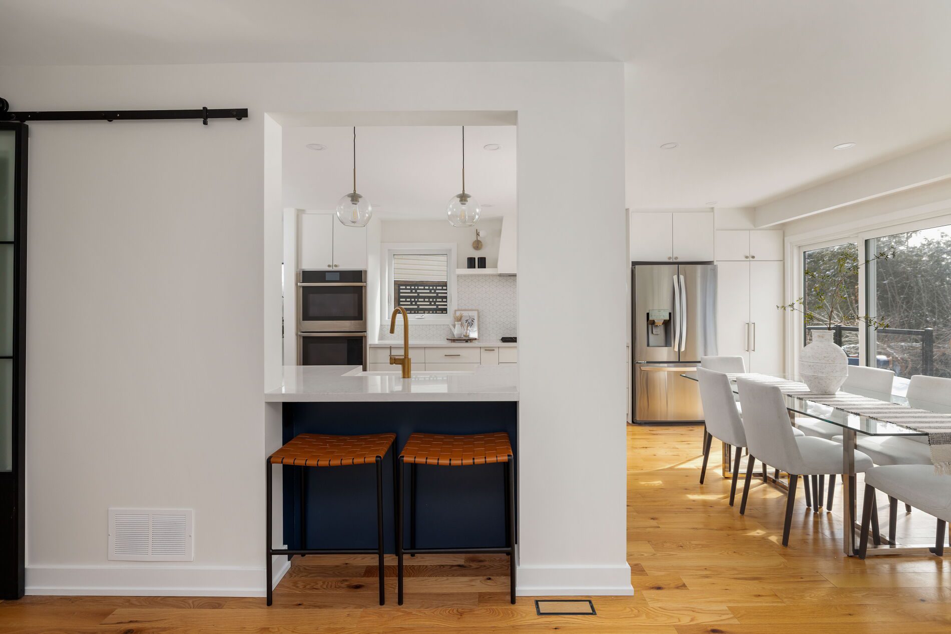Drenched in natural light & completely renovated over the past four years, this sexy 4-bedroom 4-bathroom home is just steps away from the Petticoat Creek conservation park, outdoor fields, and waterfront trails. Designer tiles, modern fireplace, stone counters, a dbl oven, gas range, white oak floors, spa bathrooms, a pretty pergola out back – they’ve thought of it all.